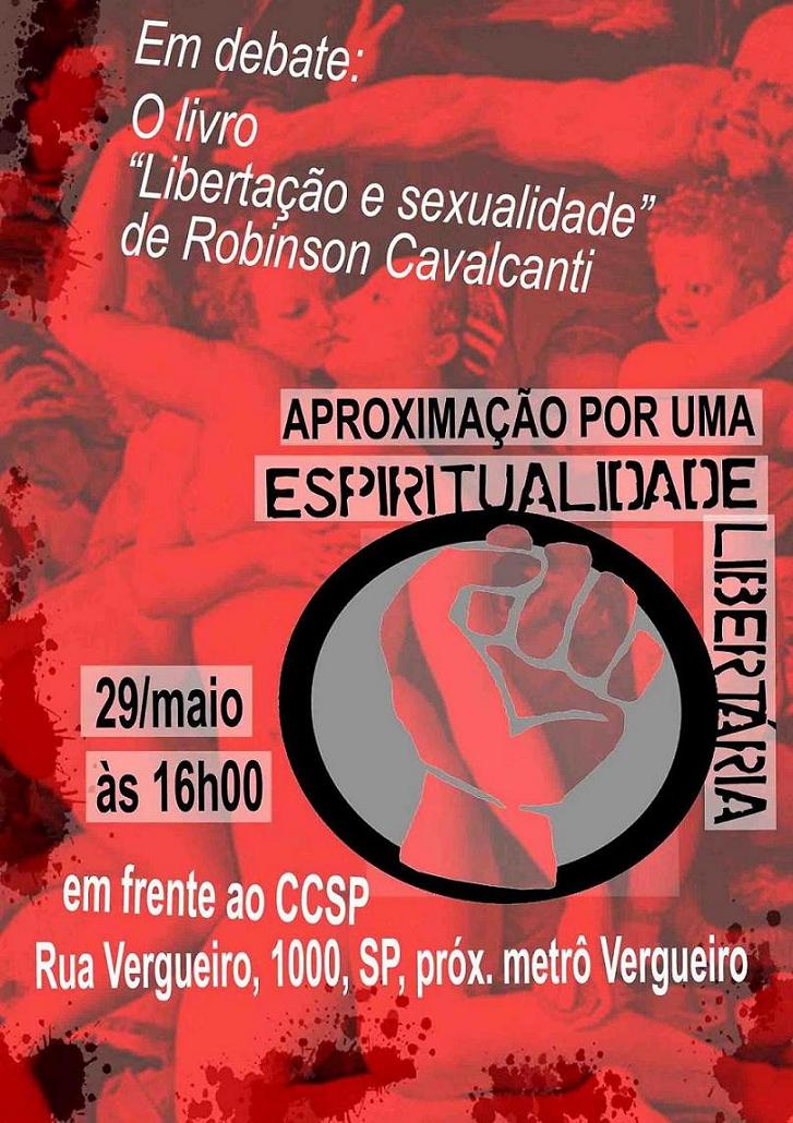 Nossa aproximação será no dia 29 de maio às 16h00 em frente ao CCSP. Como foi sugerido pelo Emiliano no último encontro, falaremos um pouco sobre o livro “Libertação e sexualidade” de Robinson Cavalcanti, entre outras coisas. Lembrem-se que quitutes são sempre bem-vindos.