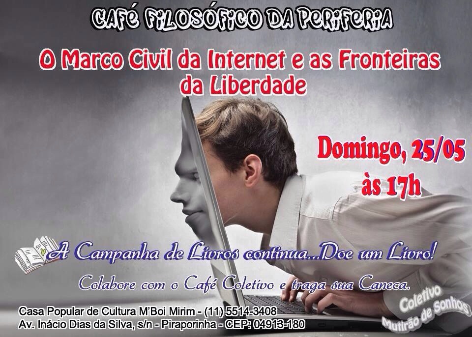 Neste domingo (25) às 17h tem Café Filosófico da Periferia Publicado em 23/05/2014 por Espiritualidade Libertária Neste domingo (25) às 17h tem Café Filosófico da Periferia na Casa de Cultura M’Boi Mirim, São Paulo. Compareçam!! Compartilhe isso:PublicarCurtir Carregando... Relacionado