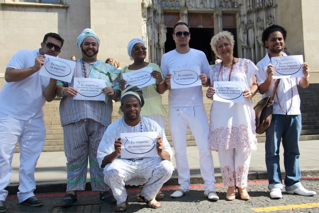 No dia 24 de agosto (domingo), na Praça da Sé, aqui em São Paulo, ocorreu o Ato de Repúdio à Intolerância Religiosa. Este ato foi organizado e apoiado por diversos adeptos das religiões afro-brasileiras, pois infelizmente é o povo-de-santo que mais sofre com a intolerância religiosa no Brasil. Muita gente presente e solidária com as pessoas que sofrem com a intolerância religiosa.