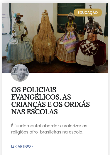 O artigo de opinião “Os policiais evangélicos, as crianças e os orixás nas escolas”, de autoria de Silas Fiorotti, coordenador do Projeto Diversidade Religiosa em Sala de Aula, foi publicado no Jornal A Pátria (23 jan. 2026).