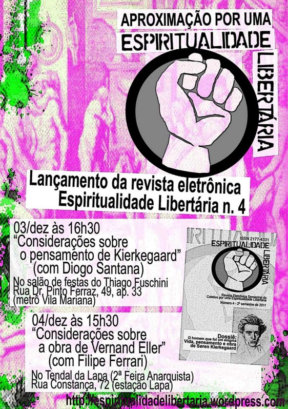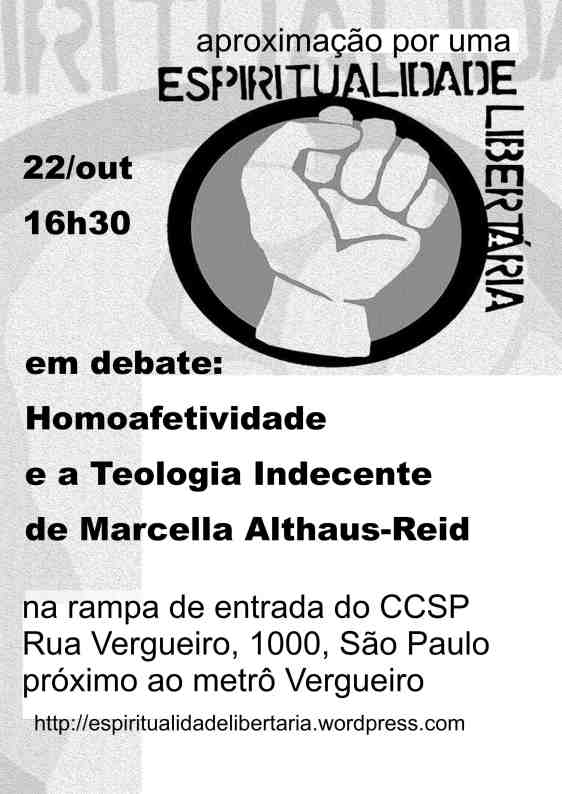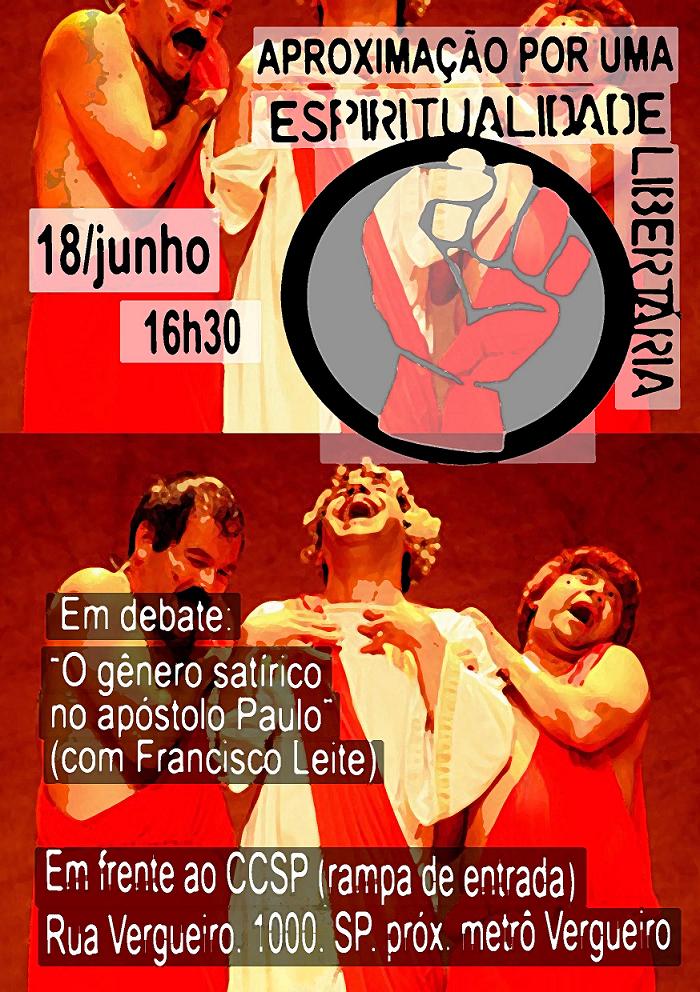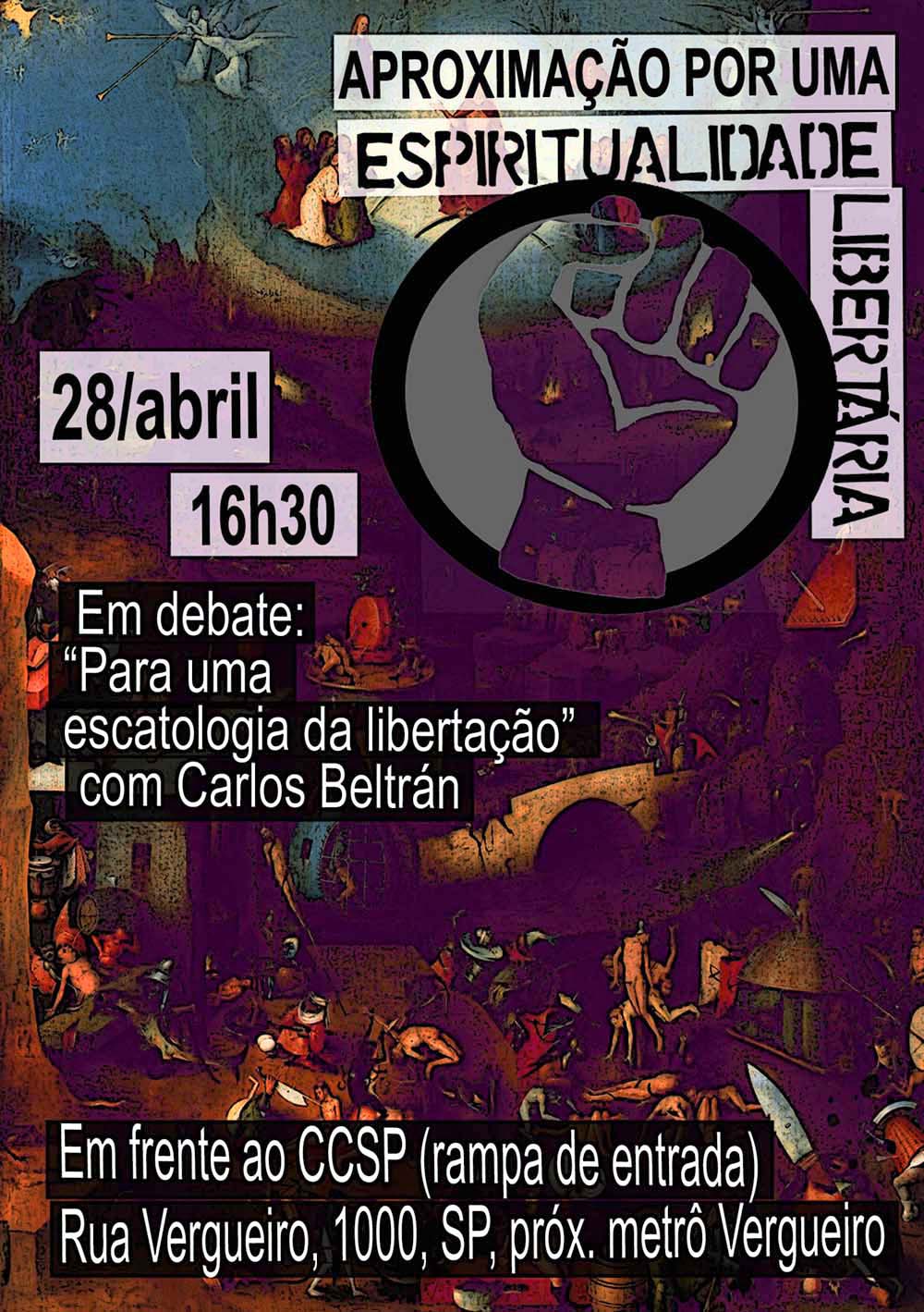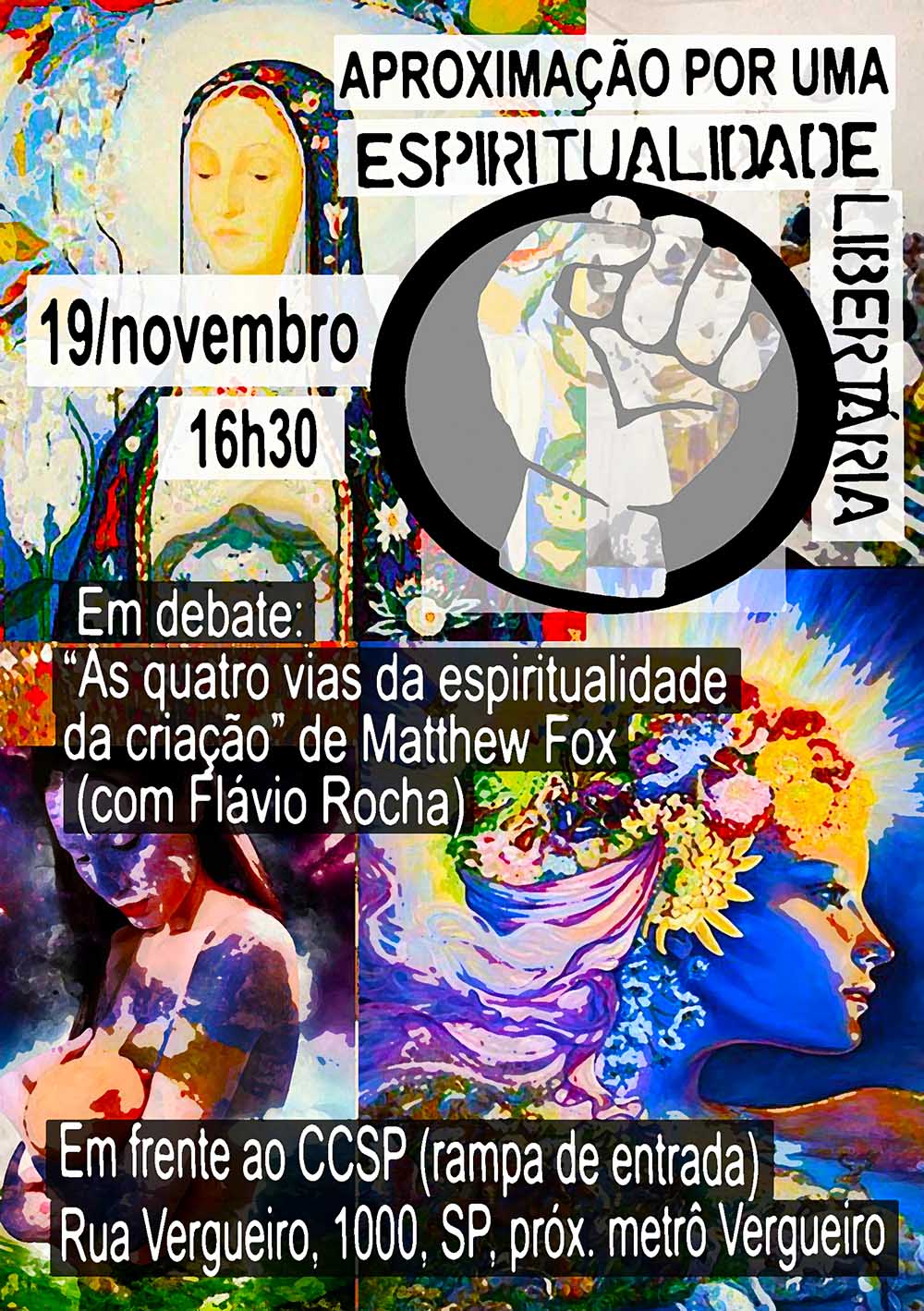 Nossa Aproximação por uma Espiritualidade Libertária será neste sábado (28 de abril) às 16h30.